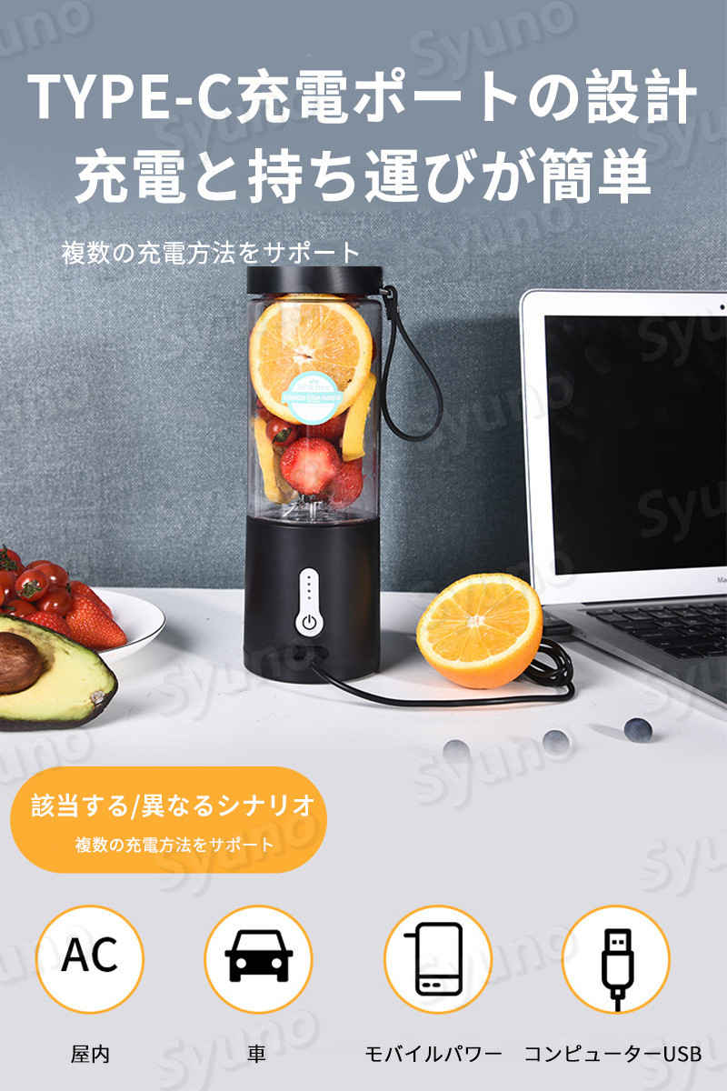 ミキサー ジューサー ジューサーミキサー 氷も砕ける ブレンダー スムージー フードプロセッサー 小型 野菜&果物&離乳食用 洗いやすい USB充電式 530ml 携帯ジューサー コンパクト 持ち運び 操作簡単