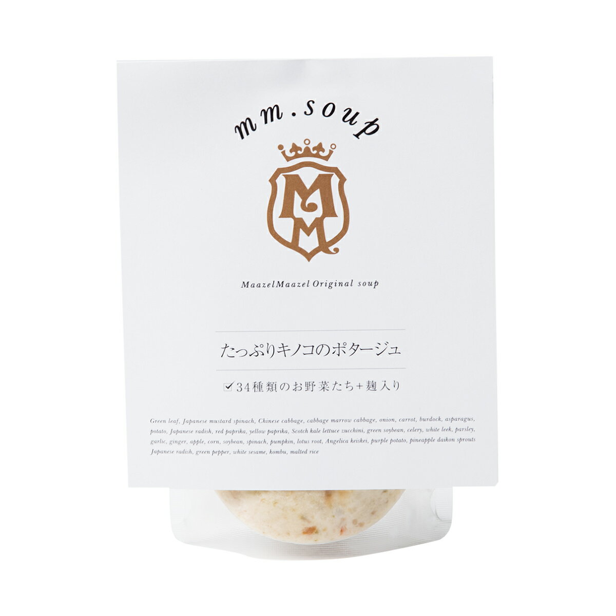 【名称】スープ【数量・内容】180g×2【賞味期間】製造日より180日【原材料】牛乳(国内製造)、きのこ(椎茸、たもぎ茸、マッシュルーム、ヒラタケ)、カット野菜(白菜、キャベツ、大根、人参、じゃがいも、なす、玉ねぎ、ごぼう、枝豆、とうもろこし、大豆)、野菜ペースト(グリーンリーフ、小松菜、ケール、米麹、その他)、食塩不使用バター、白ワイン、乳等を主要原料とする食品、チキンパウダー、かつお節エキス、ナチュラルチーズ、食塩、酢酸発酵調味料/増粘剤(加工澱粉)、調味料(アミノ酸等)、(一部に乳成分・鶏肉・りんご・大豆・ごまを含む)【仕様】掲載商品には、アレルギーの原因といわれる原材料を含んでいる場合がございます。