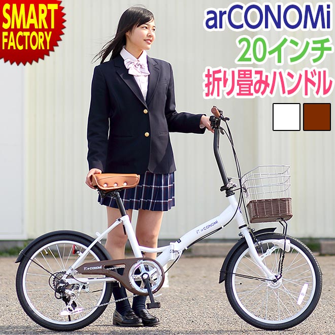 折りたたみ自転車 20インチ ハンドル 折りたたみ 籐風 カゴ ダイナモライト 肉厚チューブ CONOMI このみ コノミ 通学 通勤