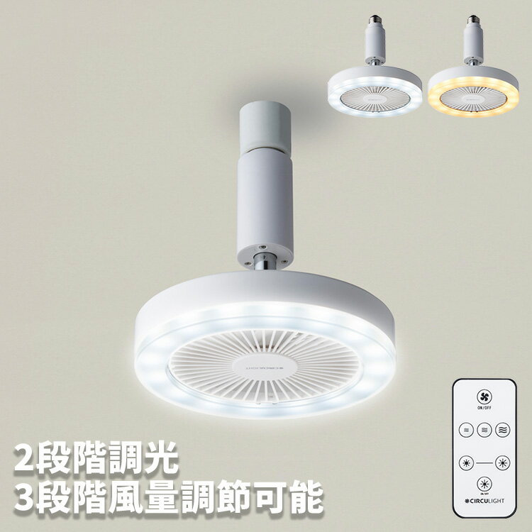 LED シーリングファン サーキュライト E26|小型 リモコン付き サーキュレーター 扇風機 調光 トイレ 洗面所 暖房 冷房 シーリングライト 天井照明 キッチン 60w相当 脱衣所 軽量 ソケット 白