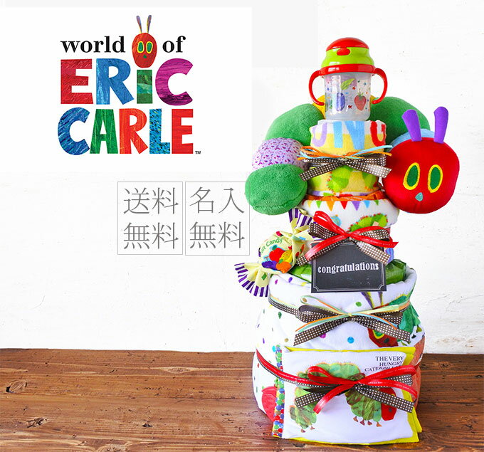 \平日16時まで当日発送/おむつケーキ はらぺこあおむし 豪華9点セット 4段 50枚 名入れ無料 はらぺこあおむし グッズ 出産祝い 赤ちゃん 出産 ギフト プレゼント お祝い 男の子 女の子 オムツケーキ 刺繍 タオル 腹ペコ青虫 マグ バスタオル