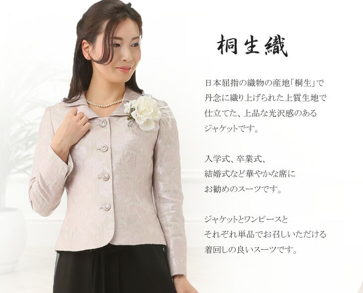 スーパーSALE限定超特価 9号 11号 13号 15号 桐生織 高品質 日本製 ラメ入りふくれジャケット&七分袖シフォンワンピーススーツ 選べるワンピースサイズ コットン 麻 シルク 絹 結婚式 卒業式 入学式 光沢感 母親 ママ 母 選べる3色 990A/976B-224