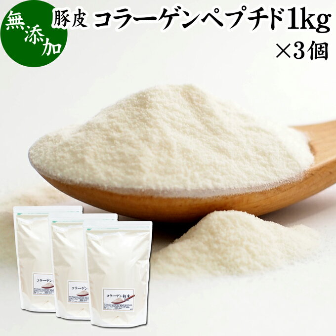 コラーゲンペプチド 1kg×3個 粉末 パウダー サプリ サプリメント コラーゲン 豚皮 由来 低分子 送料無料 100% 無添加 無着色 無香料 純粋 動物性 水溶性 たんぱく質 飲料 健康 食品 美容 スキンケア エイジングケア collagen アミノ酸 コーヒー お茶 ジュース ゼラチン スー