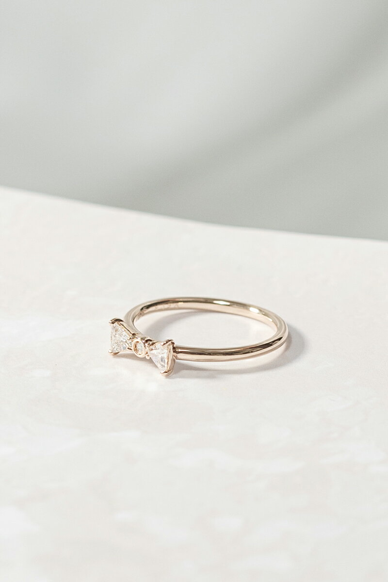 ■使用石:ダイヤモンド 0.206ct(トリリアントダイヤ) 0.01ct ■素材:K18ピンクゴールド ■最大幅(縦×横):4.4mm×9.3mm