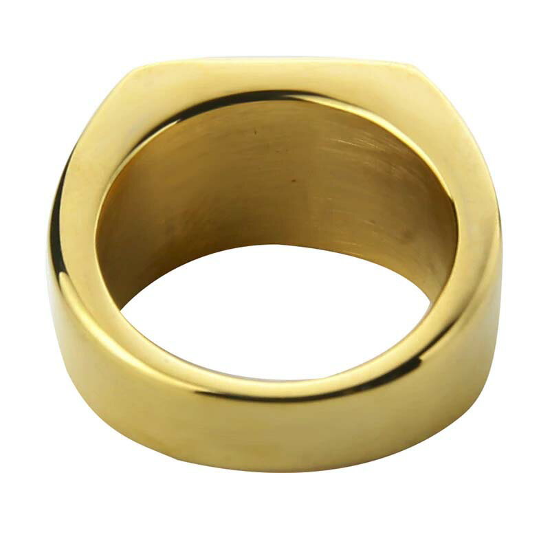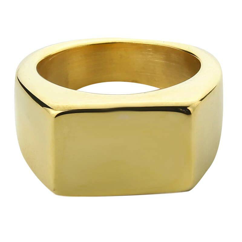 シンプルで細身の印台型のステンレスリングを金色ゴールドメッキしたスタイリッシュな指輪。