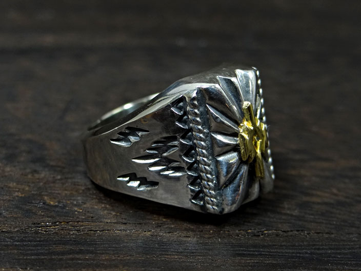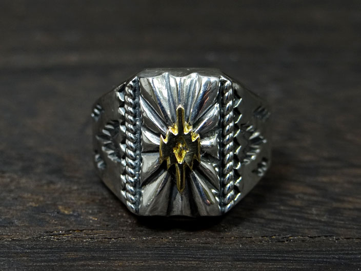 Dear Blossom(ディアブロッサム)『スクエアサンバースト+K18チマヨポイント 印台リング』(R-041-K18CUSTOM)インディアンジュエリー/指輪/シルバー/ゴールド