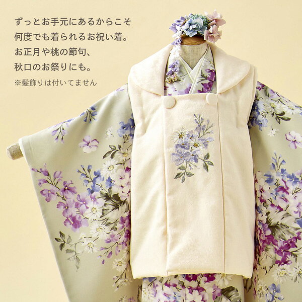 【サイズ】 着物:身丈約80.5cm / 裄約43cm / 袖丈約57.0cm 被布:身丈約48.0cm / 身幅約41.5cm(脇部分約34cm)【素材】 ポリエステル100%生地:日本 縫製:中国【使用シーン】三歳の七五三に。
