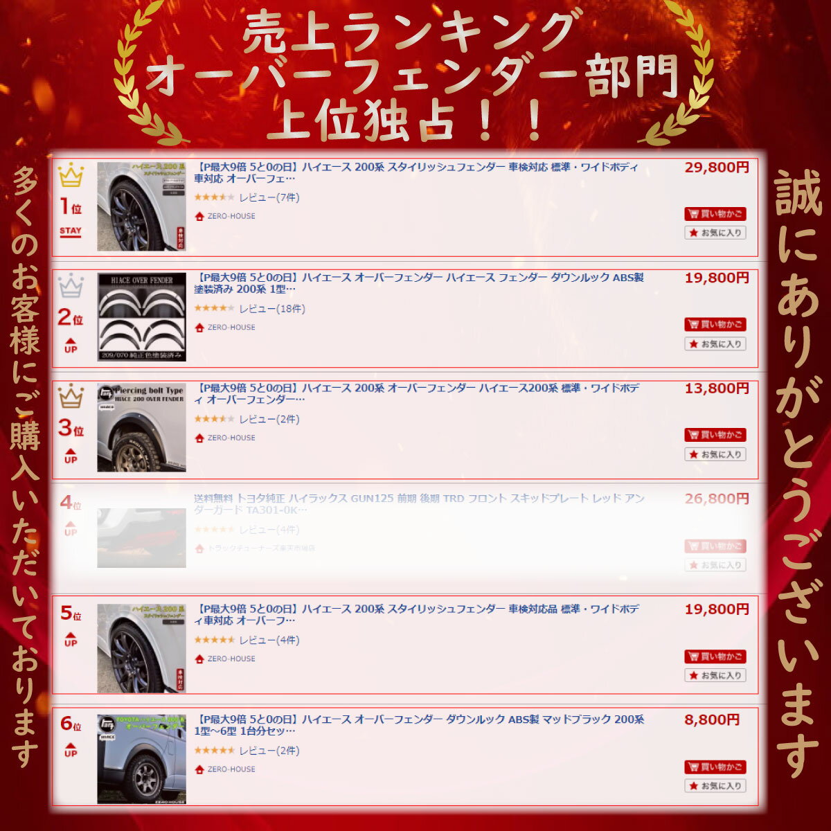 【新色追加】ハイエース 200系 スタイリッシュフェンダー 車検対応 標準・ワイドボディ車対応 オーバーフェンダー レジアスエース 塗装品 070パールホワイト 209ブラックマイカ 1E7シルバーマイカ 1G3グレーメタリック