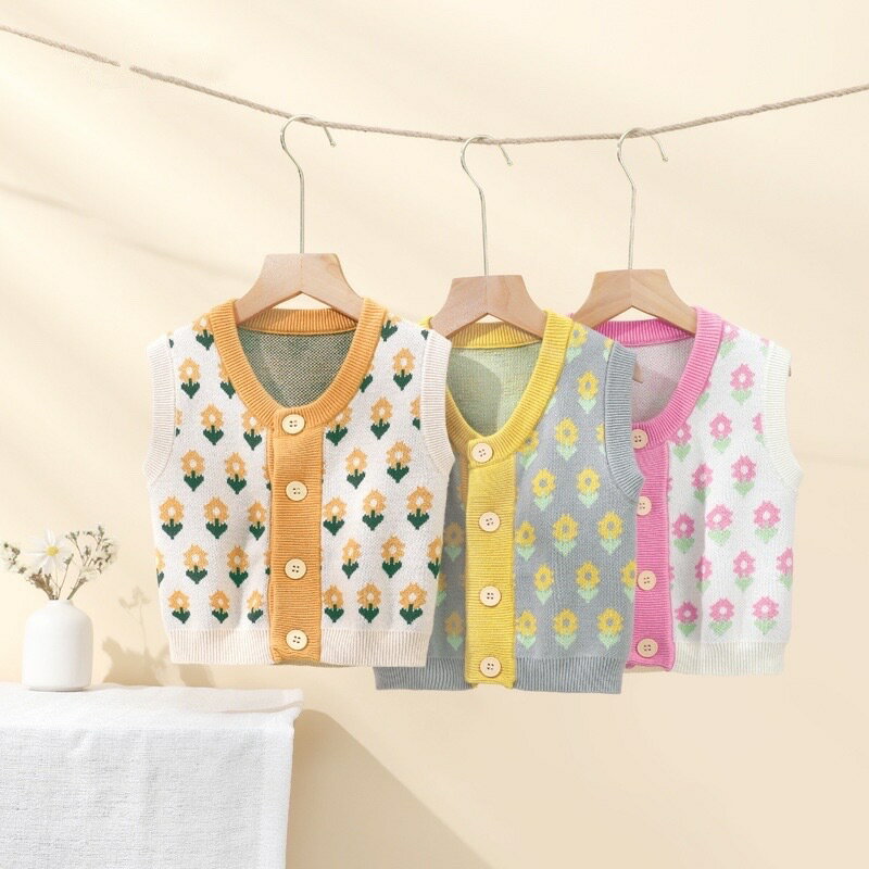 【送料無料】女の子 キッズ ベビー キッズ ジュニア ベスト お出かけ ニットカーディガン セーター 裏起毛 遊び着 通学 普段着 通園 セーター Vネック 春秋冬 プルオーバー トップス 3種の色73-130cm 花ちゃん かわいい 100%綿 クリスマス 新年祝い 暖かい 大活躍の季節 肌触りにもこだわる ニット 【特徴】伸縮性もあり、動きやすく、適度な厚みで、寒い冬も暖かいです。