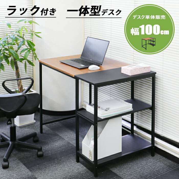 【ポイント5倍! 8/31 23:59まで 】パソコンデスク 幅100cm PCデスク 学習机 ラック付き デスク 収納 机つくえ 木製 オフィスデスク ワークデスク ゲーミングデスク 学習デスク 在宅勤務 テレワーク おしゃれ 一人暮らし