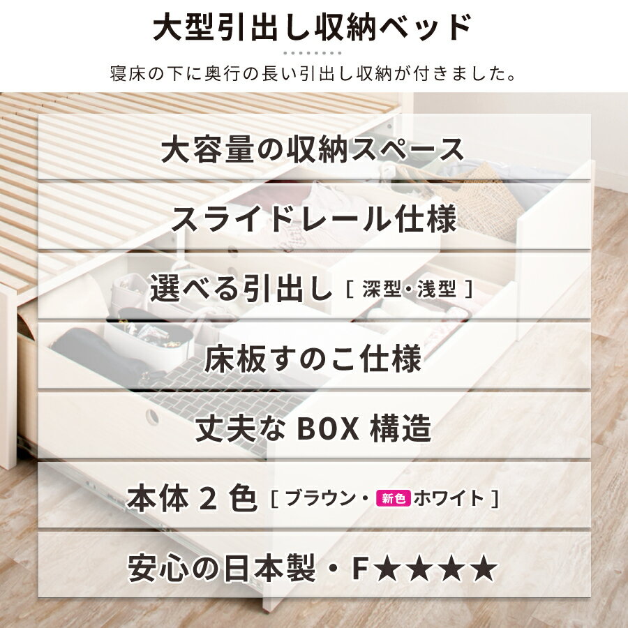 特 徴: 引き出しの奥行き(内寸)84cm で、たっぷり収納できるチェストベッドです。