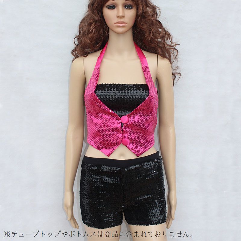 スパンコールの装飾が煌びやかな、ジュニア〜レディースサイズのダンス用トップス。