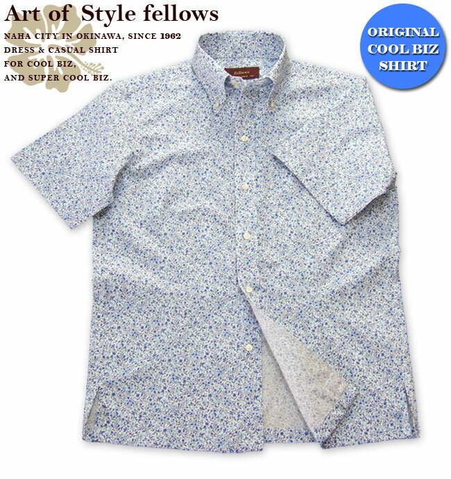 かりゆしウェア結婚式に アロハシャツ 沖縄 メンズ ボタンダウン 半袖 クールビズ Yシャツ ワイシャツ 【楽ギフ_包装】 【rcp】 おしゃれ 限定 花柄 白×青 ブルー 花柄 ( msfl-wt03-0017 )