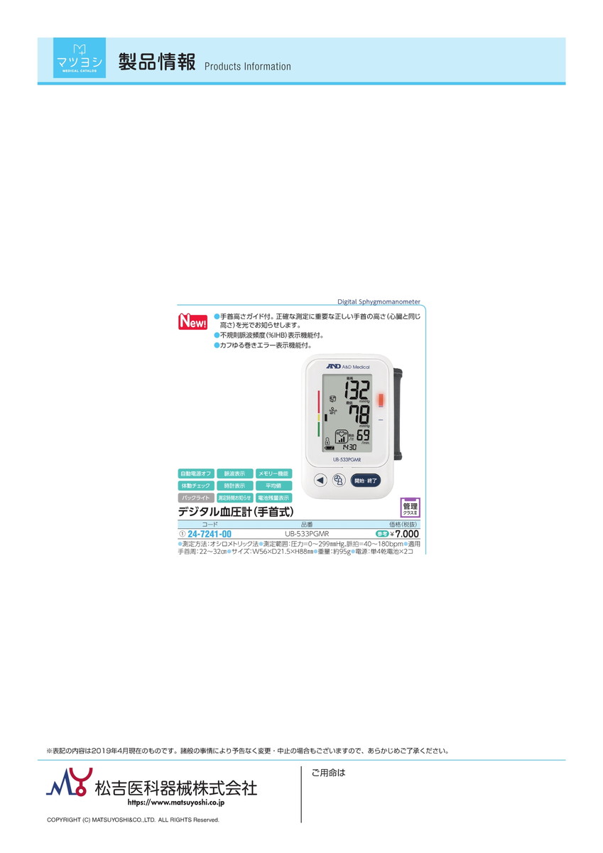 【病院専用商品】手首式血圧計 UB-533PGMR品番 24-7241-001入り 管理 診察・診断 診断機器 定価\7000 JAN 4981046151474 ●商品説明 ●手首高さガイド付。